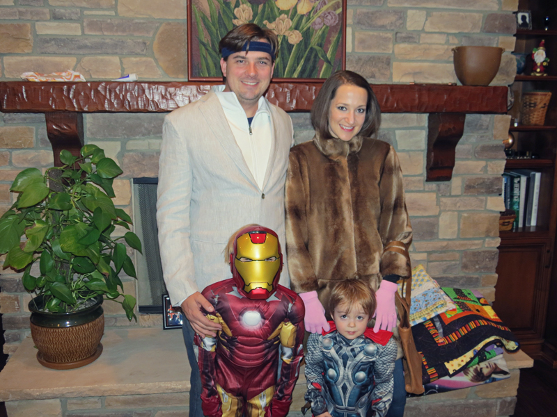 Back to the costume… I loved these costumes for several reasons, but I was especially fond of them because it was an exceptionally cold Halloween that year and our outfits were nice and toasty. This was another costume that we threw together at the last minute with items in our closet. My faux mink coat was one of those things that David thought I was crazy for buying. Why would I possibly need a coat like that in Southern California? He had a point. Practical it was not, but I bought it anyway because one: I loved it; and two: you just never know when you might need a faux mink coat – like on the off chance you might someday wish to dress up like Margot Tenenbaum.